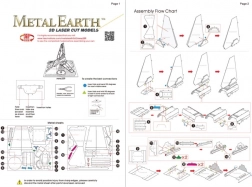 Scoateți piesele din foițele metalice; dacă este necesar, folosiți cleștișori tăietori mici (neincluși). Piesele se conectează între ele prin încuietori formate dintr-un cârlig (cioc) și o deschidere. Îndoiți cârligul cu ajutorul unor clești subțiri mici (neincluși) și îmbinați treptat toate încuietorile până când obțineți o piesă de rezistență foarte realistă!