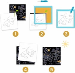 Descoperiți o activitate distractivă inspirată de metoda Montessori. Copiii își exersează în siguranță concentrarea, precizia și controlul forței de apăsare în timp ce creează superbe imagini translucide. Suportul ferm din spumă și carton menține materialele stabil pe loc, astfel încât micii creatori să lucreze ușor și cu încredere.