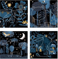 Pachetul conține 16 fundaluri, 16 șabloane, ac de perforat, suport și ghid ilustrat. Materiale din hârtie și carton cu certificare FSC.