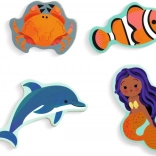 Descoperă puzzle-ul din lemn de la DJECO cu un motiv fermecător al lumii subacvatice și al sirenelor. Susține dezvoltarea motricității fine, coordonarea mână–ochi și gândirea logică. Fiecare piesă are un contur colorat pentru o așezare mai ușoară, iar datorită ramelor, piesele stau mai bine la locul lor. Elementele de inserție pot fi folosite și ca figurine de sine stătătoare pentru joacă.