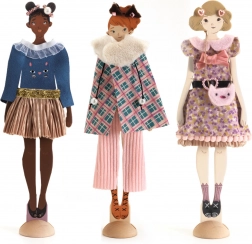 - 3 păpuși ce stau în picioare cu suporturi din lemn