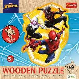 Descoperiți puzzle-ul din lemn cu eroul SPIDER-MAN, care încântă prin forme neregulate și piese ascunse inteligent. Setul conține 50 de piese, dintre care 10 sunt figurine tematice pentru un plus de distracție. Piesele au pe verso un model decorativ, se remarcă prin execuție de calitate și culori intense. Realizat din materiale ecologice, ideal pentru copii de la 5 ani.