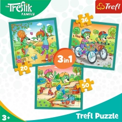 Descoperiți puzzle-ul progresiv 3în1 distractiv cu îndrăgiții eroi Treflíci. Setul include trei puzzle-uri separate cu dimensiunea de 20 × 19,5 cm, cu 20, 36 și 50 de piese, care cresc treptat în dificultate și dezvoltă motricitatea fină, răbdarea și gândirea logică.