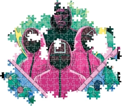 Intrați în lumea Squid Game și recreați o scenă iconică din popularul serial. Puzzle-ul cu licență Netflix oferă imprimare de calitate, decupaje precise și piese rezistente care se îmbină perfect. Ideal pentru serile liniștite sau ca un cadou pentru fanii serialului.