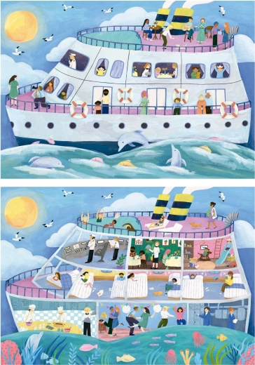 Două puzzle-uri de calitate de la EDUCA aduc motive jucăușe ale unui vaporaș de agrement văzut din exterior și din interior. Fiecare puzzle are 100 de piese rezistente, care se îmbină precis și formează o imagine cu dimensiunea de aproximativ 40 × 28 cm. O alegere ideală pentru copiii care adoră să descopere detalii și povești ascunse în imagini.