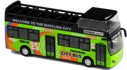 Modelul realist de autobuz etajat aduce ore de distracție și dezvoltă imaginația copiilor. Datorită manoperei de calitate și materialului rezistent, rezistă la joacă intensivă. Autobuzul este inspirat din construcțiile clasice și oferă mișcare datorită mecanismului 'pull back'. Lumini și sunete funcționale îmbogățesc experiențele de joacă, în timp ce interiorul detaliat cu scaune și volan permite un joc autentic.