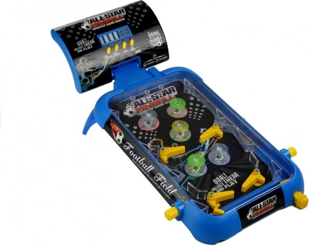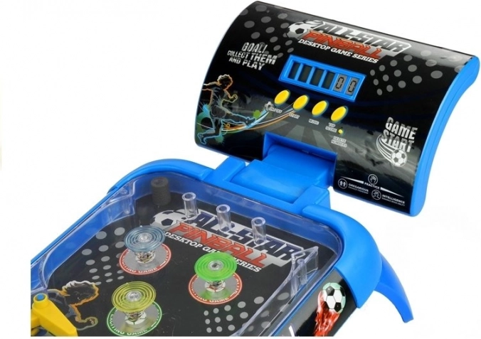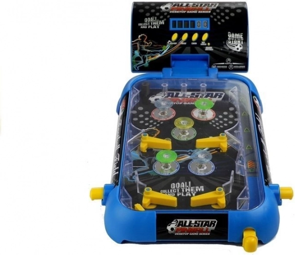 Designul jucăriei flipper arată ca o versiune mini a unui aparat clasic. Suprafața de joc este conectată la două picioare și la un contor de scor, a cărui poziție poate fi ajustată după nevoile jucătorului. Datorită picioarelor, planșa este așezată într-un unghi ce permite distracție grozavă, precum și lansarea bilei în sus. Un mare avantaj al jucăriei este designul său, decorat cu motive fotbalistice. Carcasa albastră a tablei de joc este combinată cu un fundal închis, care arată senzațional după pornirea luminilor colorate. După alimentarea jocului cu baterii, apăsați butonul ON/OFF, apoi, lângă el, butonul START. Pentru a adăuga sunete la emoția jocului, apăsați pur și simplu butonul pentru muzică. Ultimul este butonul descris ca TOP SCORE, a cărui apăsare afișează cel mai mare scor obținut. Credem că această funcție vă poate motiva să dați și mai mult la următorul joc. La nevoie, acest contor poate fi resetat și jocul repornit de la început.