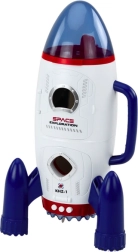 Racheta spațială albă, cu elemente roșii și bleumarin, este un adevărat bilet către cosmos. Silueta sa impunătoare și detaliile atent lucrate o transformă nu doar într-o jucărie, ci și într-o fereastră către lumea călătoriilor spațiale. La prima vedere observăm botul care se deschide, ceea ce nu doar sporește realismul, ci le permite copiilor să introducă cu ușurință o figurină de astronaut.