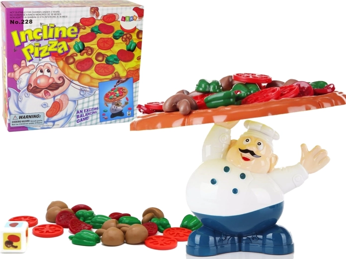 Regulile jocului sunt simple! Fiecare jucător aruncă zarul și încearcă să plaseze ingredientele extrase pe pizza. Bucătarul ține aluatul cu un singur deget, așa că trebuie să fim atenți ca nimic să nu cadă! Câștigătorul este cel care nu lasă nicio piesă să cadă în timpul turului său.