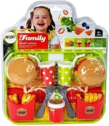 Setul nostru de bucătărie conține tot ce are nevoie micuțul tău pentru a-și potoli foamea. Poate că și pe tine te va tenta priveliștea acestor delicii să te joci! Setul include ingrediente foarte utile pe care micul bucătar le poate pregăti. Cea mai mare distracție în timpul jocului este asamblarea ingredientelor astfel încât să rezulte un hamburger gustos și sănătos. Elementele setului îi permit copilului să pregătească mâncăruri pentru două persoane.