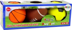 Set universal cu trei mingi moi pentru micii sportivi, aducând multă distracție acasă și în aer liber. Datorită construcției ușoare și moi, sunt sigure pentru copii, sprijină mișcarea, coordonarea și bucuria jocului. În pachet găsiți mingi cu aspect de fotbal, baschet și baseball.