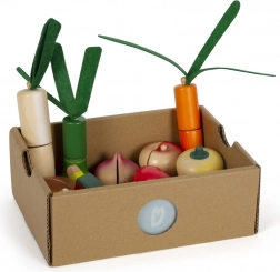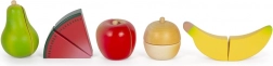 Setul de fructe și legume de tăiat Fresh oferă copiilor distracție și educație în același timp. Cu cuțitul de lemn, copiii pot "tăia" în siguranță piesele individuale, dezvoltându-le astfel motricitatea fină și coordonarea mână-ochi.
