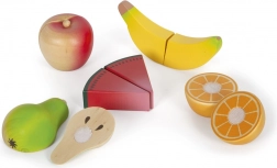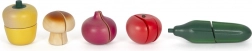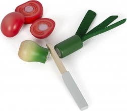 Alimentele sunt unite cu scai, permițând "tăierea" lor cu cuțitul de lemn inclus. Copiii se pot juca astfel de-a gătitul, la fel ca adulții.