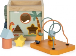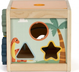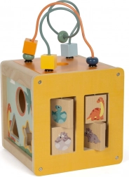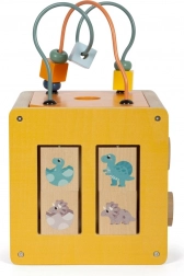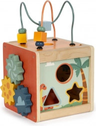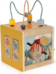 Cub din Lemn pentru Abilități Motorii Dino este o jucărie multifuncțională ideală pentru camerele copiilor cu spațiu limitat. Datorită capacului rotativ și labirintului cu mărgele, oferă multă distracție, dezvoltă abilitățile motorii și inspiră creativitatea.