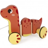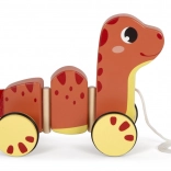 Dinozaurul simpatic va încânta orice copil mic la primii săi pași. Datorită construcției sale în trei segmente, oferă un efect distractiv la fiecare tragere a sforii. Cu roțile cauciucate, micul tău dinozaur se poate mișca ușor și oferă o deplasare silențioasă.