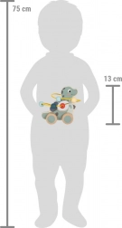 Dinozaurul oferă joc cu deplasare pe roți și un labirint interactiv cu mărgele, care dezvoltă abilitățile motrice fine și grosiere ale copiilor.