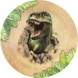 Organizează o petrecere cu dinozauri plină de stil cu farfurii rotunde din hârtie, decorate cu un T‑Rex proeminent și frunze verzi. Datorită diametrului universal de 22,5 cm, servești comod totul, de la felii de tort până la gustări și pizza. Motivul atrage atât copiii, cât și adulții și completează perfect decorul tematic.