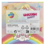 Șervețele de hârtie stilate cu motiv de unicorn pentru aniversări, petreceri pentru copii și teme speciale. Pachetul conține 12 buc de șervețele cu dimensiunea de 33 × 33 cm (după desfacere). practice, decorative și ușor de asortat cu alte decorațiuni. Produsul nu este o jucărie.