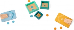 Joc de masă distractiv și palpitant pentru 2 jucători, de la 6 ani, în care contează ochirea precisă, reacția rapidă și tactica. Cu ajutorul rampei de lansare, trimiți jetoanele spre trei ținte de dimensiuni diferite – cu cât ținta e mai mică, cu atât mai multe puncte. Unele jetoane au valoare dublă, astfel încât poți combina inteligent și îți poți crește scorul. Excelent pentru dezvoltarea motricității fine și a coordonării mână–ochi.
