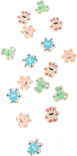 Conținutul pachetului include 16 jetoane din lemn cu monstruleți și 8 carduri de joc față-verso în două dimensiuni, astfel încât se poate alege între sarcini mai simple sau mai dificile. Execuția de calitate din lemn și carton asigură o durată de viață îndelungată, chiar și în cazul utilizării frecvente acasă sau la școală.