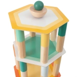 Construiți un turn înalt din stâlpi colorați și platforme, apoi încercați pe rând să extrageți piesa corectă conform culorii de pe zar. Fiecare tură este plină de tensiune – un stâlp ales nepotrivit poate provoca prăbușirea întregului turn și a semisferei amplasate în vârf. Jocul este realizat din lemn și carton de calitate, sigur, durabil și grozav atât pentru copii, cât și pentru adulți.