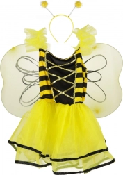 Costumul este format din rochie, aripi și bentiță cu antene, asigurând un aspect complet pentru micuța dumneavoastră albinuță.