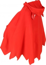 Pelerina roșu aprins, cu închidere cu 4 capse și tiv dințat, oferă costumului un aspect de drăcușor accentuat și rămâne confortabilă întreaga zi.