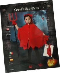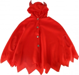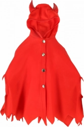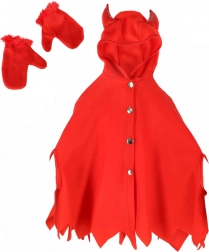 Transformați-vă micuțul în câteva clipe într-un drăcușor poznaș. Pelerina roșie cu glugă și coarne proeminente are un tiv inferior decupat în dinți și se închide cu patru capse, așa că stă bine și se îmbracă și se dezbracă ușor. Mănușile roșii, moi, cu tiv din pluș, încălzesc plăcut și duc lookul de drăcușor la perfecțiune.
