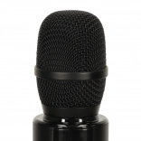 Acest microfon cu condensator, ușor, combină microfonul, difuzorul și playerul muzical într-un singur dispozitiv. Datorită Bluetooth, redai piesele direct de pe telefon sau folosești slotul pentru card de memorie și intrarea AUX. Butoanele de pe corp permit schimbarea instantanee a volumului, derularea melodiilor și ajustarea efectelor, inclusiv reverb.
