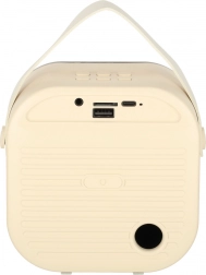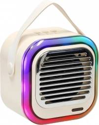 Acest difuzor karaoke crem transformă camera copiilor sau livingul într-o mică scenă. Conectivitatea Bluetooth fără fir asigură împerecherea rapidă cu telefonul sau computerul, în timp ce efectele luminoase RGB pun în evidență fiecare interpretare. Datorită celor două microfoane, te bucuri atât de solo-uri, cât și de duete cu prietenii.