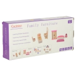 Oferiți copiilor porții nesfârșite de imaginație cu setul complet de miniaturi din lemn pentru întreaga casă. Mobilierul în tonuri moderne de mov se evidențiază frumos în orice căsuță și, datorită construcției robuste, rezistă jocului zilnic.