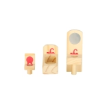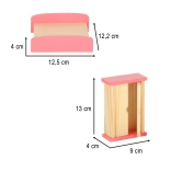 Fiecare piesă este din lemn de calitate, șlefuită fin și vopsită cu culori rezistente în nuanțe de mov și roz pentru durabilitate îndelungată și joacă sigură.