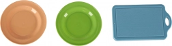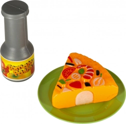 - Dotare bogată: tigaie, 2 oale cu capace, strecurătoare, 4 ustensile de bucătărie, tocător, 2 farfurii, cuțit din plastic și o selecție variată de alimente (de ex. pizza, broccoli, cârnat, pui, pepene, morcov, banană, lămâie, roșie, ou, vânătă, homar, ardei, pește, carne, sosuri, sare, ulei de măsline).