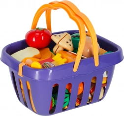 Setul colorat de mâncare din plastic pentru copii susține motricitatea fină, învățarea gătitului și jocul creativ de-a bucătarul. Piesele se unesc cu ajutorul benzilor cu arici, astfel încât alimentele pot fi „tăiate” cu un cuțit din plastic sigur și reasamblate. Include tăvi, farfurii și tacâmuri pentru copii, iar totul este depozitat într-un coș practic cu mânere pentru transport și organizare ușoară.