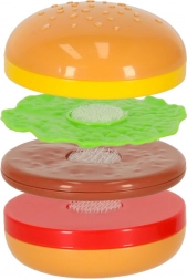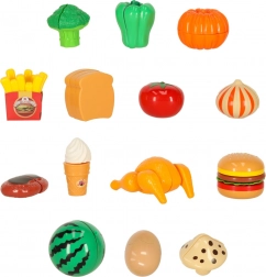 Setul amplu pentru bucătăria copiilor include tot ce au nevoie micii bucătari: pizza în felii, hamburger, legume, fructe și dulciuri. Piesele sunt împărțite în jumătăți și unite prin benzi cu arici, astfel încât copiii pot exersa în siguranță tăierea, servirea și pregătirea unui meniu pentru toată familia.