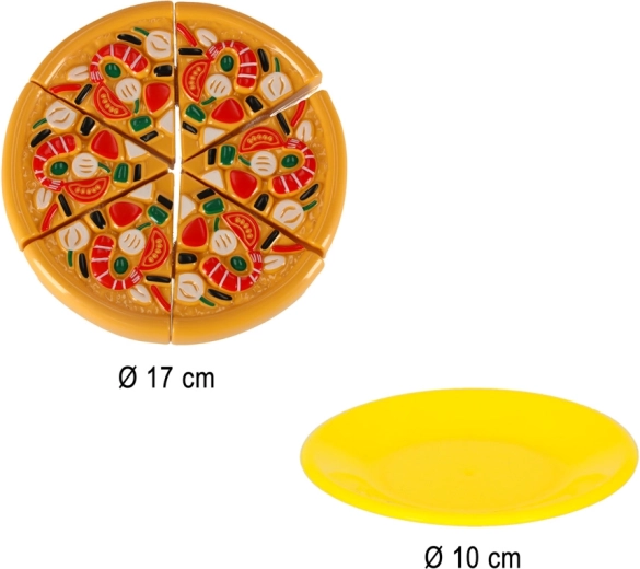Pizza din plastic, cu șase felii, invită la împărțire, servire și socializare. Bază grozavă pentru jocul de-a restaurantul sau pentru un picnic în familie.
