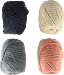 Descoperă bucuria creației cu setul de patru fire în nuanțe atent asortate (crem, gri, bleumarin, caisă). Datorită amestecului plăcut de poliester și acril, firul nu se împâslește, se încâlcește mai puțin și alunecă bine pe andrele și pe croșetă. Culorile se combină excelent pentru modele contrastante sau armonioase.