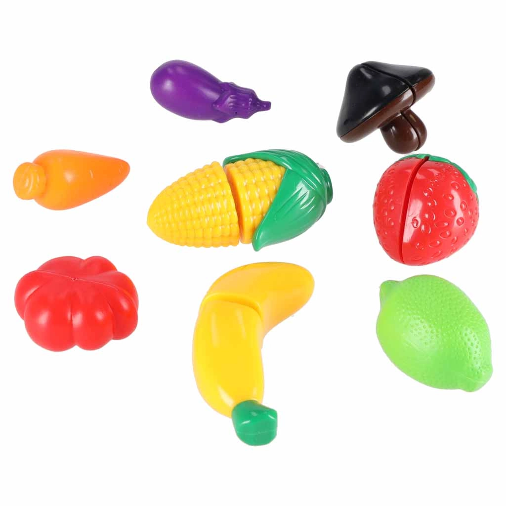- Accesorii bogate: veselă, tacâmuri, ceainic, planșetă și fructe și legume colorate.
