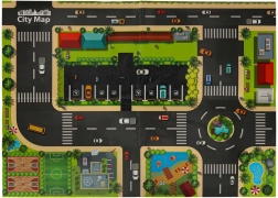 - Accesorii bogate: 4 mașinuțe, autocolante și covoraș de joc mare – harta orașului.
