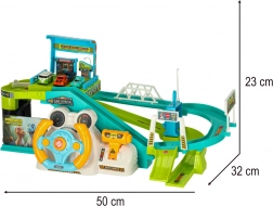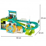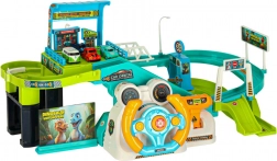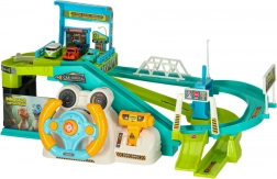 Această pistă colorată îmbină lumea imaginativă a conducerii cu dezvoltarea abilităților. Copiii pot ghida mașinuțele pe trasee șerpuitoare, pot folosi liftul manual sau automat și pot controla volanul cu butoane sonore. Este inclusă și harta orașului, care invită la povești și scenarii proprii de curse.