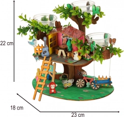 Descoperiți un proiect distractiv și educativ în care copiii își construiesc singuri o căsuță stabilă în copac, o decorează cu vopsele și o însuflețesc cu figurine de animale. Datorită bolurilor incluse se pot semăna semințe (semințele nu sunt incluse) și se poate urmări creșterea lor în jurnalul clar structurat. Setul dezvoltă abilitățile manuale, coordonația și răbdarea.