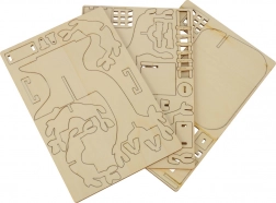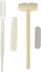 - piese din lemn, autocolante, jurnal de creștere, frânghie, plante artificiale, ciocănel din lemn, pipetă, 4 figurine de animale, vopsele, 2× pensulă, 3× bol din plastic