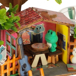 Construiește-ți propria căsuță în copac și transform-o într-o mică lume a fanteziei. Acest set DIY creativ pentru copii de la 6 ani combină construitul, pictura și îngrijirea plantelor. Include piese din lemn, vopsele, pensule, boluri pentru însămânțare, jurnal de creștere și figurine drăgălașe de animale. Susține motricitatea fină, creativitatea și bazele grădinăritului – distracție și învățare într-un singur produs.