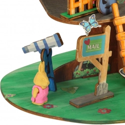 Decupajele precise din lemn se desprind ușor și se îmbină într-o căsuță stabilă. Vopselele și pensulele incluse permit o personalizare unică.