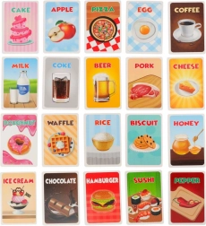 Include 54 de cărți cu imagini diverse ale alimentelor, benzi pentru cap și jetoane. Jocul este conceput să fie amuzant și captivant atât pentru copii, cât și pentru adulți. Este ideal pentru consolidarea abilităților sociale și promovează fair-play-ul. Din acest motiv este o alegere perfectă pentru serile în familie și întâlnirile cu prietenii.