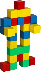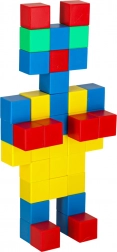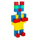 Setul de blocuri de construcție conține 64 de blocuri magnetice, care se conectează prin magneti și permit crearea diverselor construcții. Fiecare bloc are forma unui pătrat, oferind copilului posibilitatea de a crea liber atât construcții simple, cât și mai complexe. Blocurile sunt în culori intense: verde, galben, roșu și albastru, care atrag atenția și invită la realizarea de proiecte colorate.