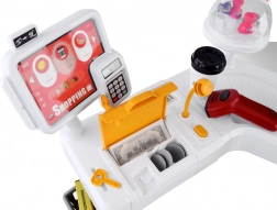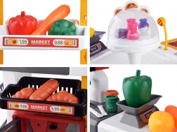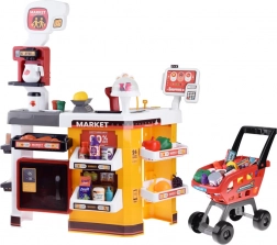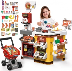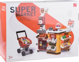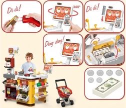 Supermarketul pentru copii este un set complet de joc care include multe elemente distractive. Echipat cu o cofetărie, un aparat de cafea, un frigider și un cărucior de cumpărături, acest set de joc imită un supermarket adevărat. Casa de marcat este funcțională, emite sunete și lumini realiste, adăugând autenticității jocului. Pentru o experiență și mai mare, există un frigider iluminat cu simulare de ceață, asemănător cu congelatoarele reale.