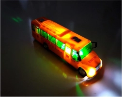 Marele atu al autobuzului este execuția precisă, care constă într-un design ce ia în considerare până și cele mai mici detalii, precum și materialul solid și durabil, rezistent la jocuri frecvente. Efecte suplimentare de lumină și sunet. În interiorul autobuzului luminează LED-uri verzi și se aude o muzică prietenoasă. Întregul vehicul este galben, cu inscripția roșie Autobuz școlar. Drumul spre școală cu acest autobuz poate fi considerat plăcut, iar distracția îi va încânta și pe colegii tăi. Un alt avantaj îl constituie ușile față și spate care se deschid, astfel încât toți pasagerii pot urca.