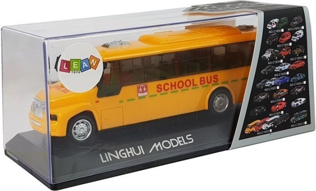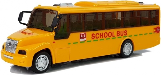 Autobuz școlar cu lumini puternice și sunete, uși care se deschid