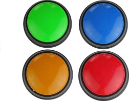 Butonele se remarcă prin trei sunete diferite (verde și roșu au același sunet), care se activează la apăsarea luminii. În timpul jocului puteți auzi sunete ce amintesc, printre altele, de o sirenă de poliție, servicii secrete sau triumf. Suntem siguri că varietatea de culori și sunete emanate de elementele jucăriei va determina pe oricine să o folosească în moduri diverse. Singura limită este imaginația – buzzerele luminoase pot fi folosite atât acasă, în jocuri și joacă, cât și la școală, unde vor servi drept semnalizatoare pentru toți participanții. Acest set va fi o modalitate excelentă de a îmbunătăți îndemânarea și reflexele copilului dumneavoastră, deoarece poate fi folosit în jocuri care presupun memorarea culorilor apăsate și apoi redarea secvenței.